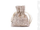 A durva lurex szerkezetű kis ajándéktáska minőségi kialakítású, elegáns és luxus megjelenésű . Szatén zsinórral húzzák. A táskába apró ajándékokat rejthet el különféle alkalmakra, például esküvőkre, születésnapokra, évfordulókra, karácsonyra stb. A csillogó táska eredeti módja az ajándék becsomagolásának és magasabb szintre emelésének.